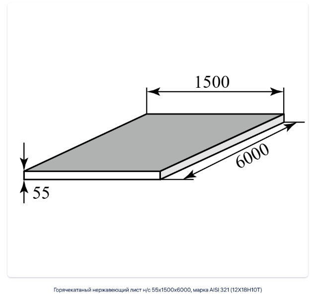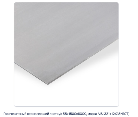 Горячекатаный нержавеющий лист н/с 55х1500х6000, марка AISI 321 (12Х18Н10Т)