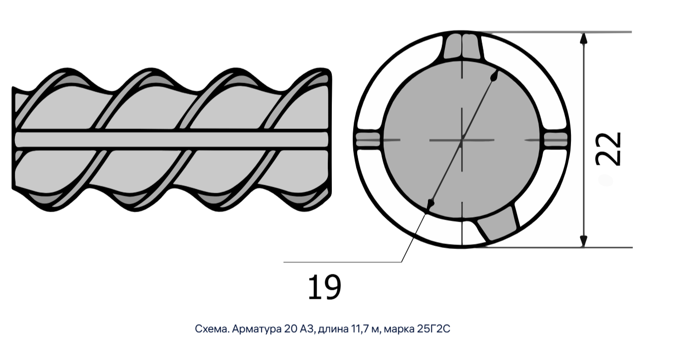 Арматура рифлёная А3 диаметром 22 мм, длиной 11,7 м, марка А500С используется для армирования бетонных конструкций. Рифлёная поверхность арматуры обеспечивает лучшее сцепление с бетоном, что увеличивает прочность и надёжность строительных элементов.