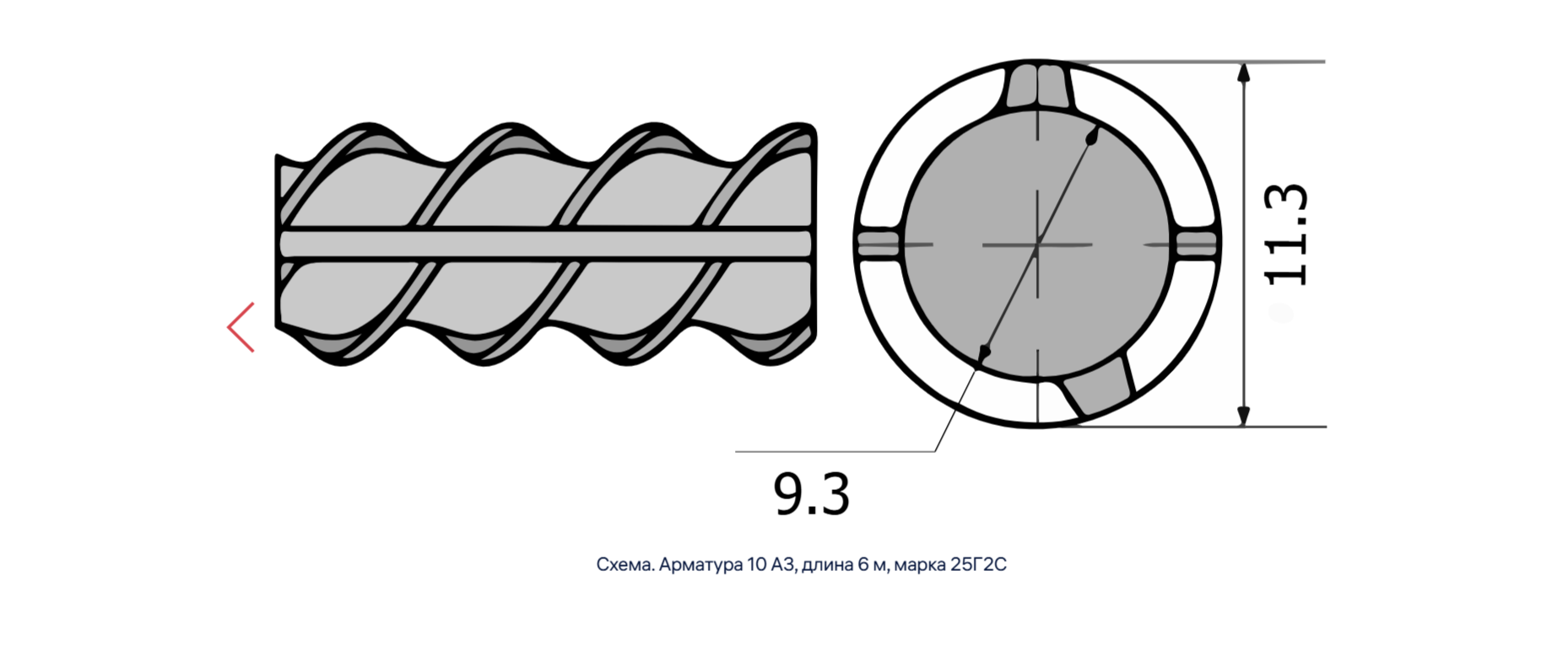 Арматура диаметром 10 мм, длиной 6 м, марка 25Г2С используется в строительстве как усиливающий элемент в железобетонных конструкциях. Это рифлёный металлический стержень, изготовленный из стали марки 25Г2С.