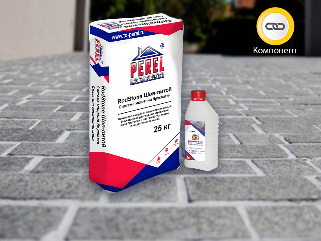 RodStone Шов-литой Компонент «С» - специальный водный раствор ускоряющих добавок для использования совместно с сухой смесью «Шов-литой» при заполнении швов брусчатки.