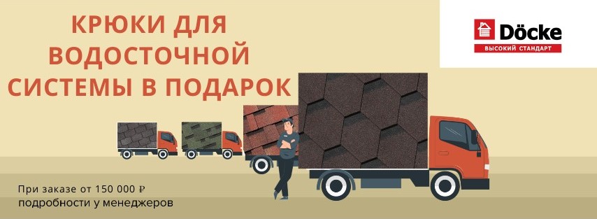 При покупке кровельных систем DOCKE на сумму от 150 000 рублей дарим крюки для водосточной системы!